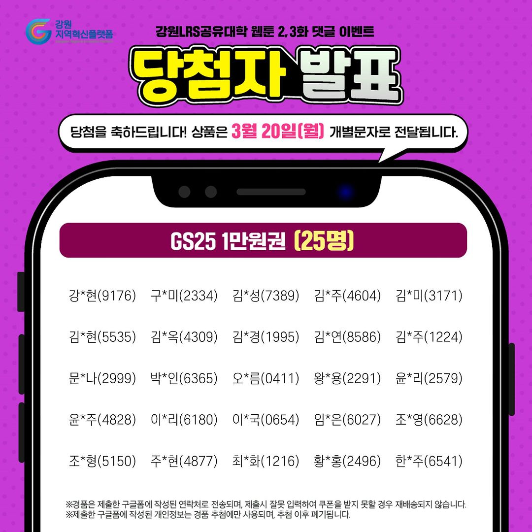 #강원LRS공유대학 #강원지역혁신플랫폼 #웹툰이벤트 #당첨발표